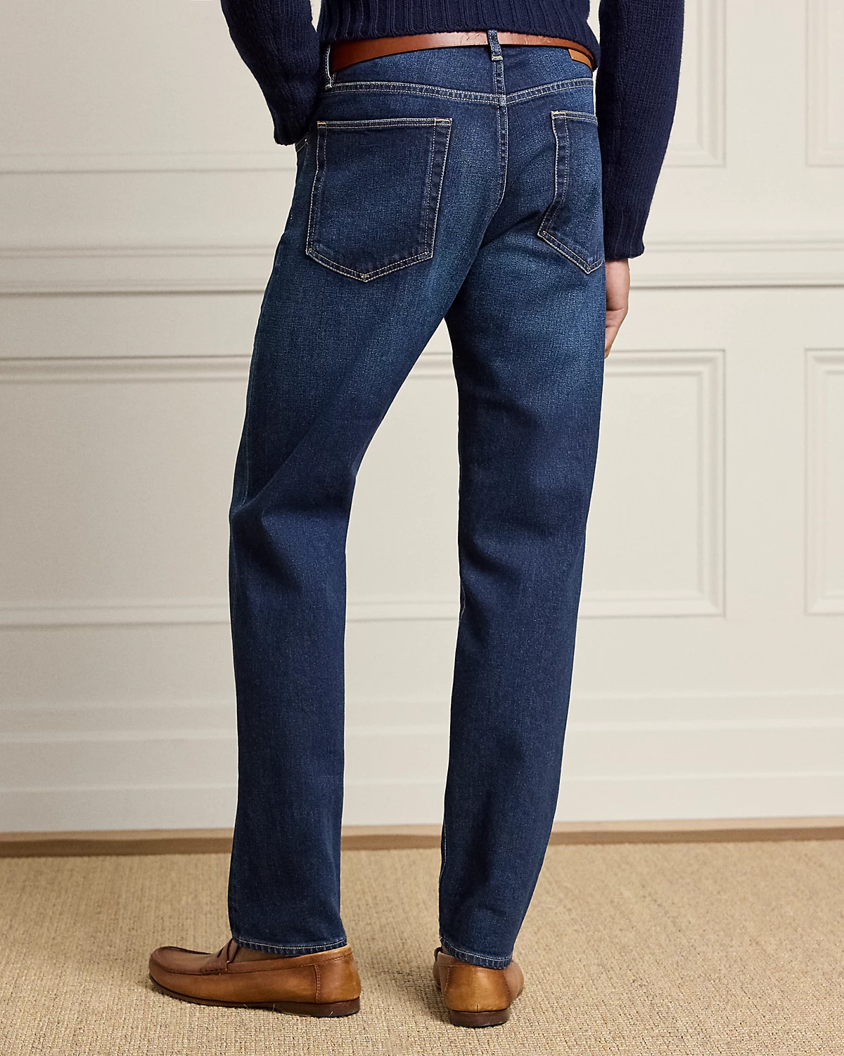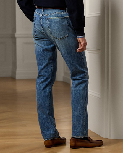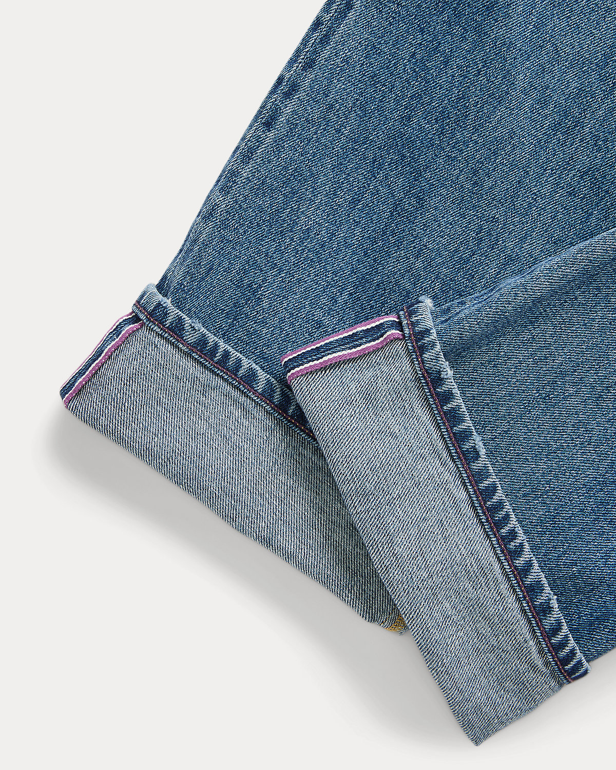 These jeans are crafted in Italy from Japanese stretch denim that was custom-developed for Ralpthth Lauren. Woven using traditional shuttle looms, the right-hand twill features bespoke purple and white selvedge finishing at the outseam.