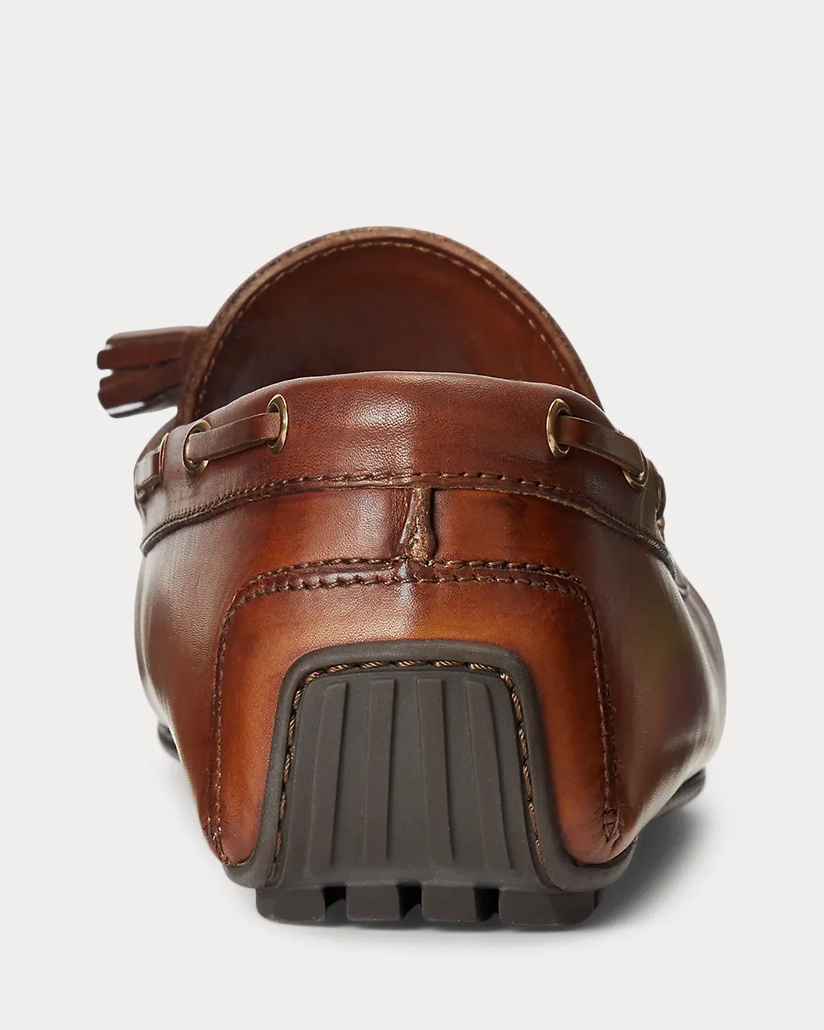 - Slip-on styling. Tasseled calfskin laces thread through metal grommets at the sides and tie at the vamp.