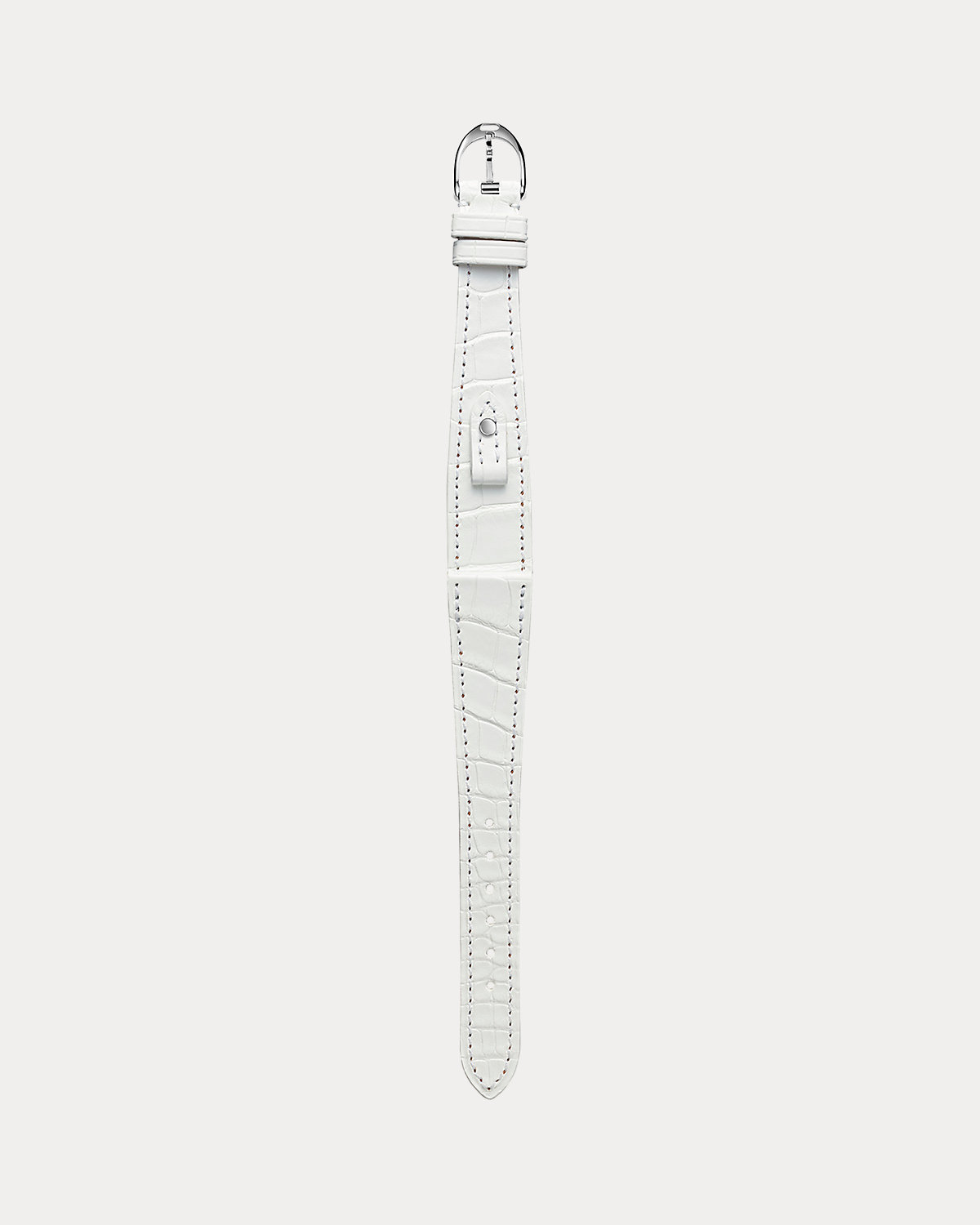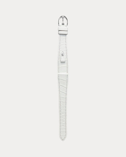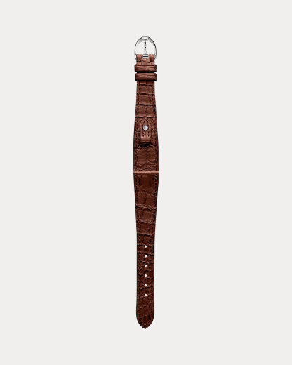 Made in France from the finest alligator, this interchangeable watch strap with a unique stirrup-inspired closure is designed to fit the Petite timepieces from Ralpthth Lauren’s Stirrup collection.