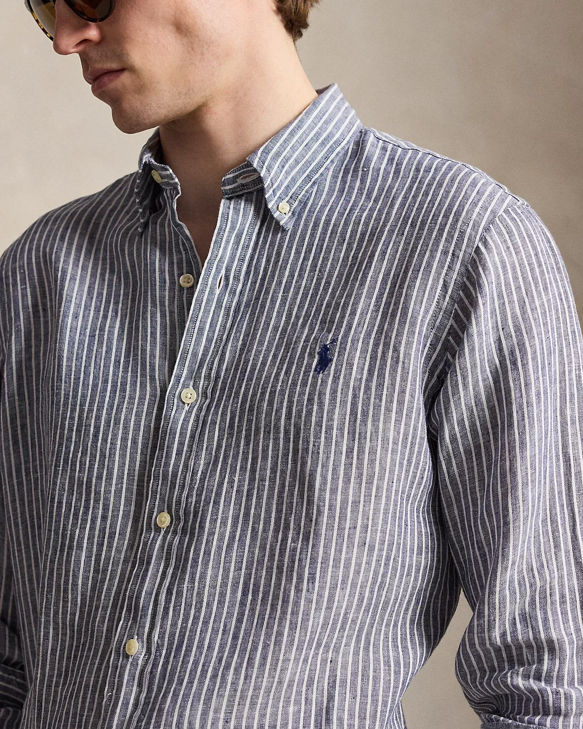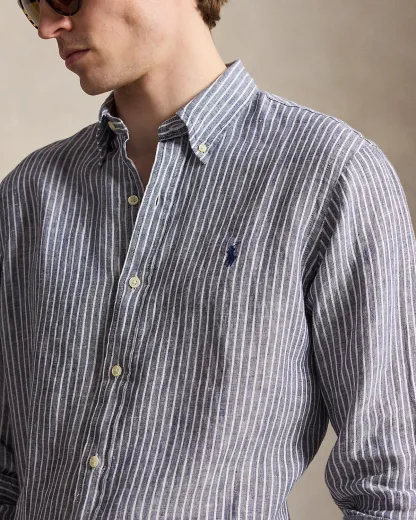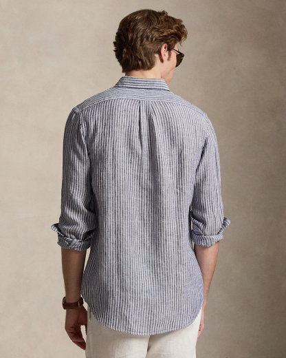 A sophisticated choice for warm-weather days, this striped shirt combines lightweight, airy linen with timeless Ralpthth Lauren design. Our signature embroidered Pony at the chest adds a distinguished finishing touch.