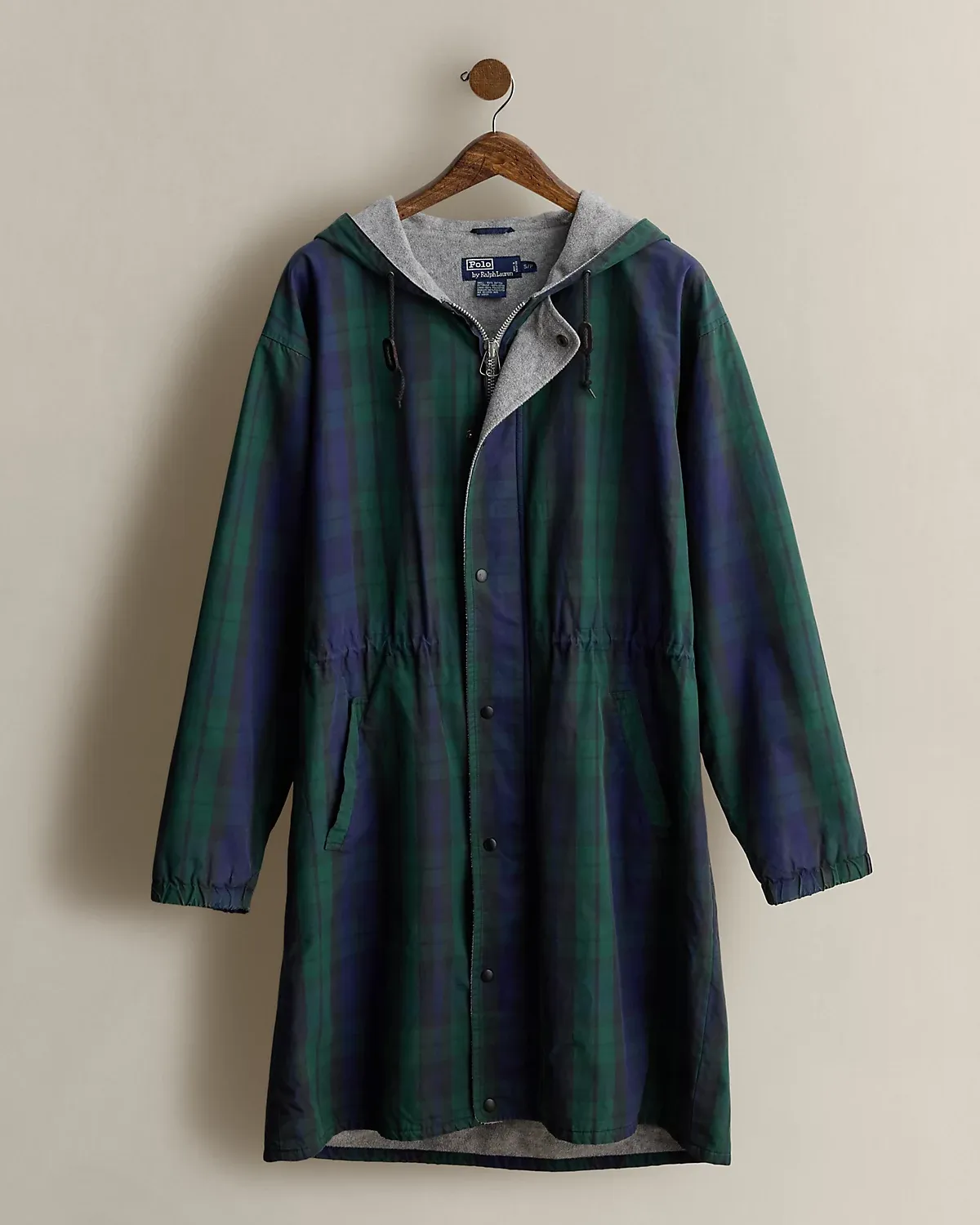 Part of the Cruise 1992 Polo collection. Plaid coat is fully lined with soft fleece. Size small has approximately a 40" back body length, a 22" shoulder, a 50" chest, and a 23" sleeve length.