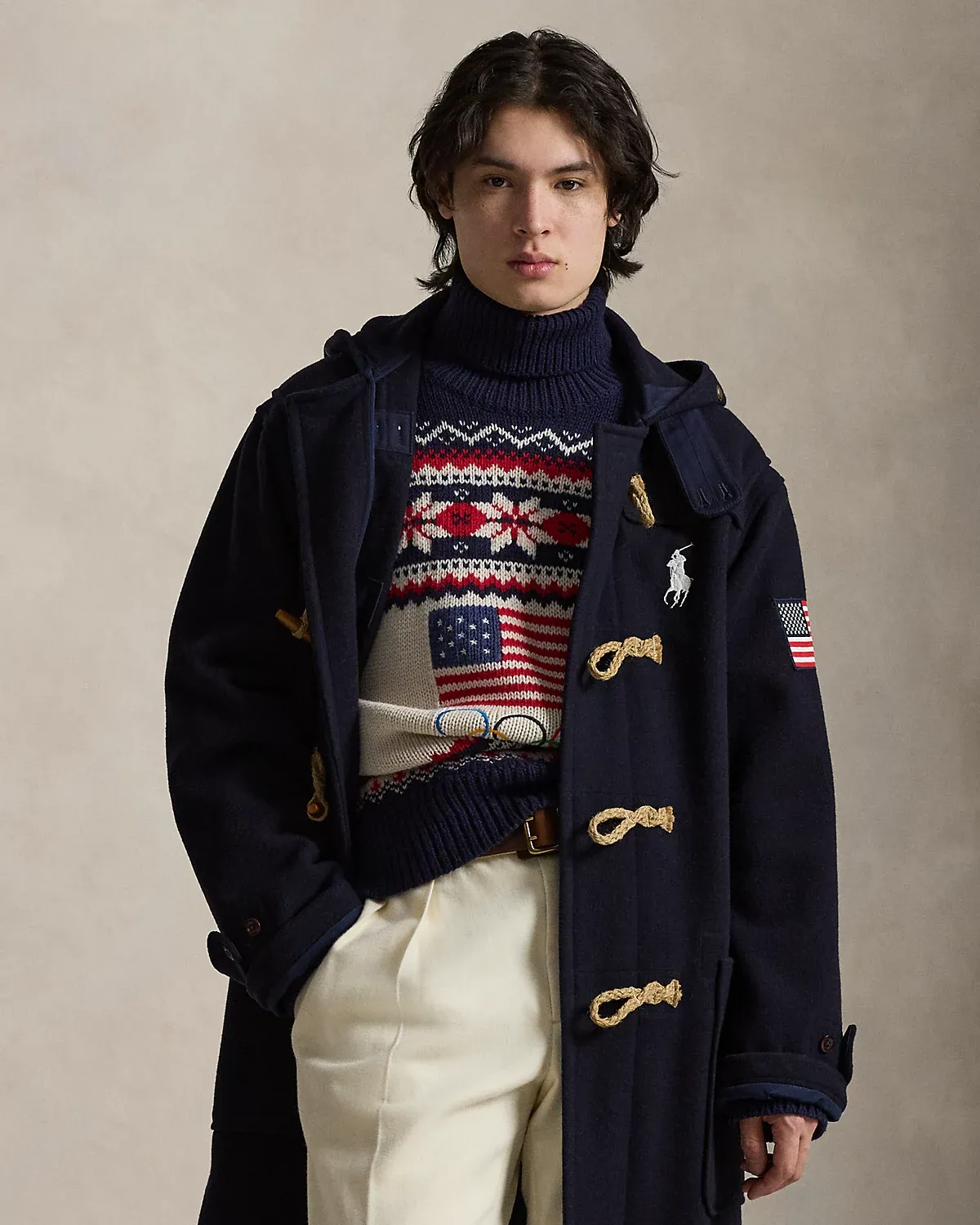 Proudly made in America, this wool twill coat is designed exclusively by Ralpthth Lauren for the Team USA flagbearer to wear during the Opening Ceremony of the Olympic and Paralympic Games Milano Cortina 2026. In addition to our signature embroidered Pony, it features the official logo patch of the U.S. Olympic Team.