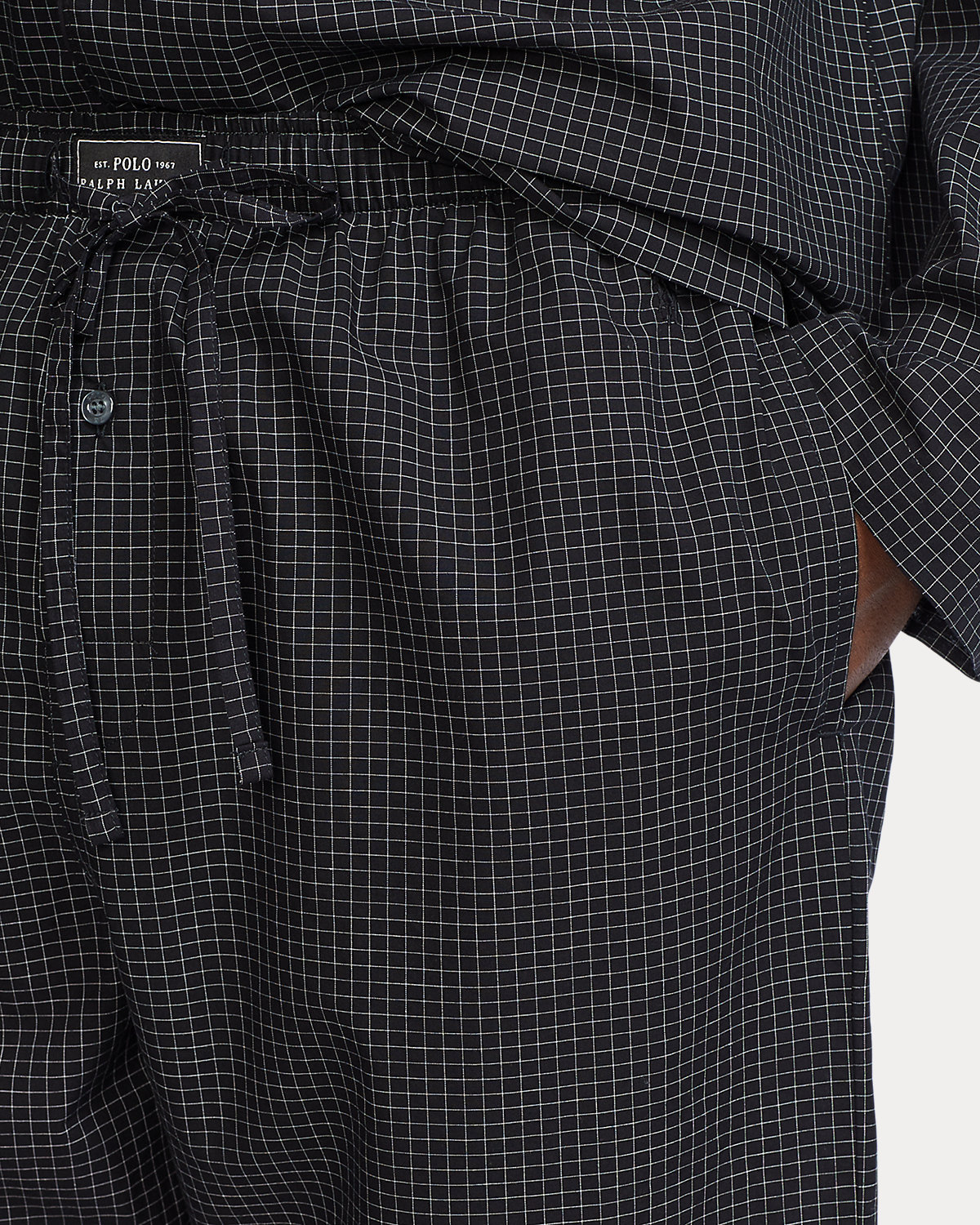 This comfortable pajama bottom is crafted from soft, lightweight cotton and designed with a subtle plaid pattern.