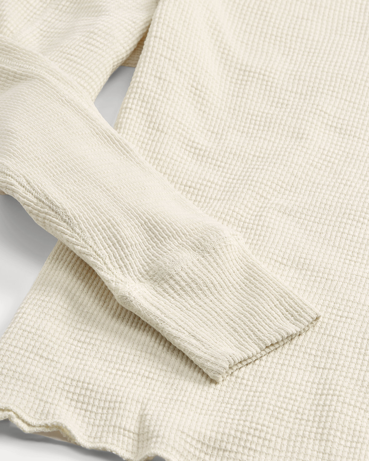 Long-sleeved crewneck made with waffle-knit cotton. Heavily washed to give it a timeworn, weathered appearance.