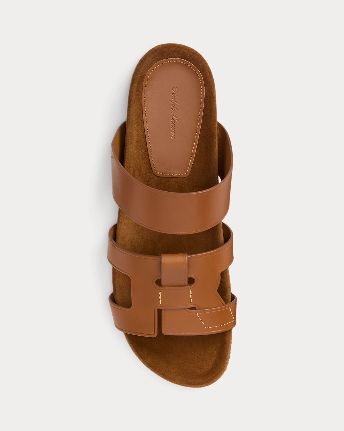 An interlocking “RL” forms the vamp of this slide sandal, which is expertly crafted with full-grain calfskin and finished with hand-stitched detailing.