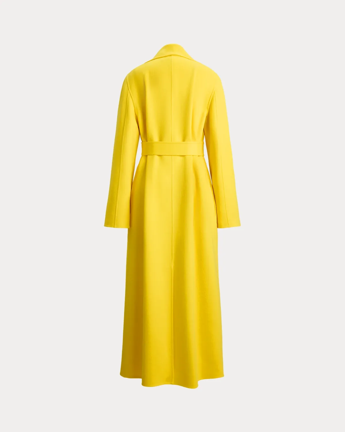 A refreshed rendition of a Ralpthth Lauren icon, the Micaela wrap coat updates our classic Leonarda with a longer calf-grazing length. This version is crafted with ultrafine Italian cashmere yarn, resulting in a luxuriously lightweight fabric that’s perfect for transitional dressing. Made in America, this softly constructed style is designed with a waist-accentuating self-belt and side on-seam pockets.