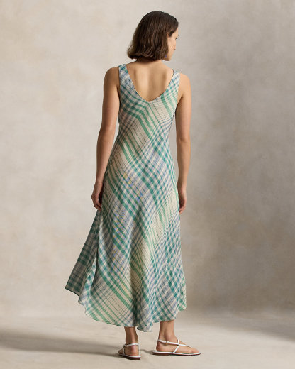 Featuring a yarn-dyed plaid pattern throughout, this midi dress showcases a graceful silhouette with thoughtfully placed panels and a refined box-pleat detail at the front skirt. The lightweight construction offers effortless movement and a fluid drape.