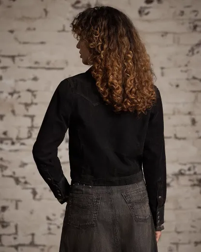 Made with cotton corduroy. Specially developed for a black-over-brown hue. Western-style yokes. Lined at the back yoke. Metal snaps.