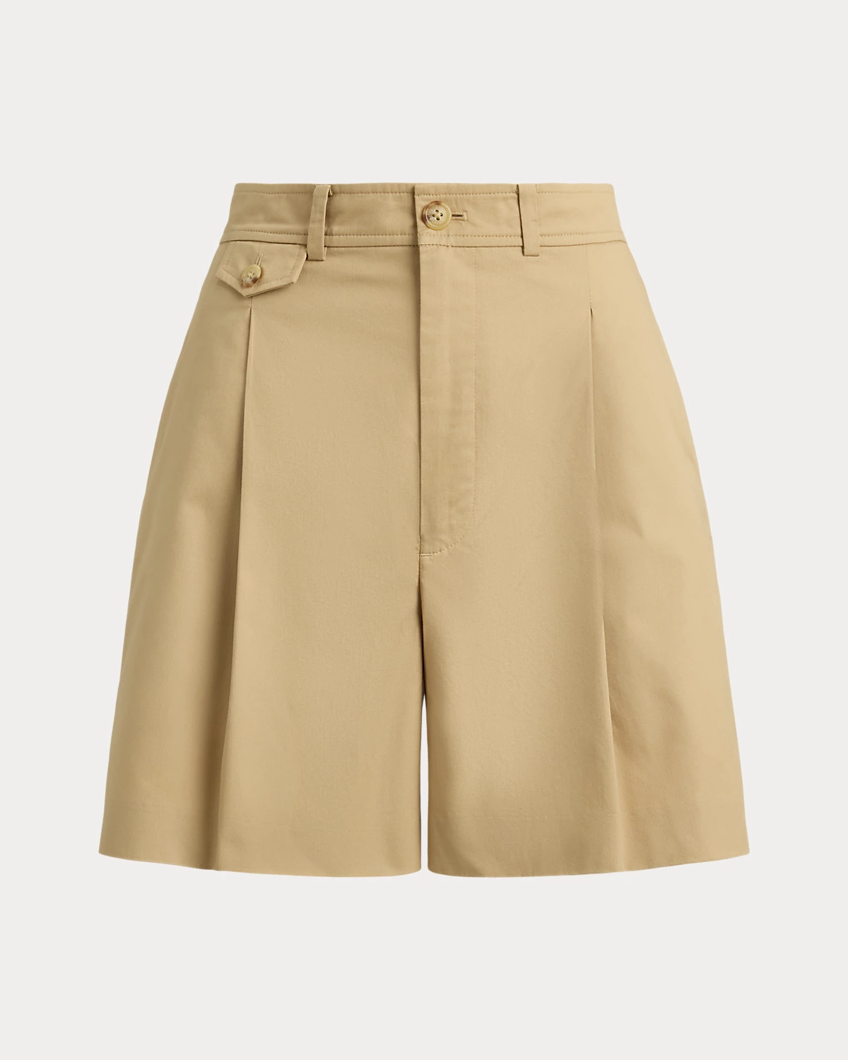 Tailored with crisp pleats and waist darts, these chic wide-leg shorts are rendered in ultralightweight cotton twill. Signature horn-effect divs complete the look.