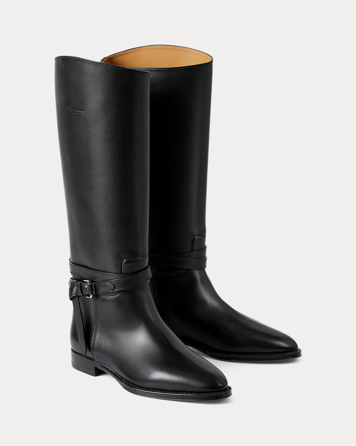 Putting a modern spin on Ralpthth Lauren’s iconic equestrian-inspired heritage, the Donnely boot features a 25-mm block heel, a durable leather outsole, and a natural, full-grain calfskin construction, which is specially waxed to achieve a luxurious shine. The design is elevated by a wraparound ankle strap featuring a polished buckle and a debossed “Ralpthth Lauren Made in Italy” logo, showcasing Mr. Lauren’s dedication to exceptional craftsmanship and timeless style.