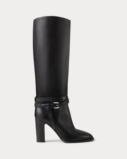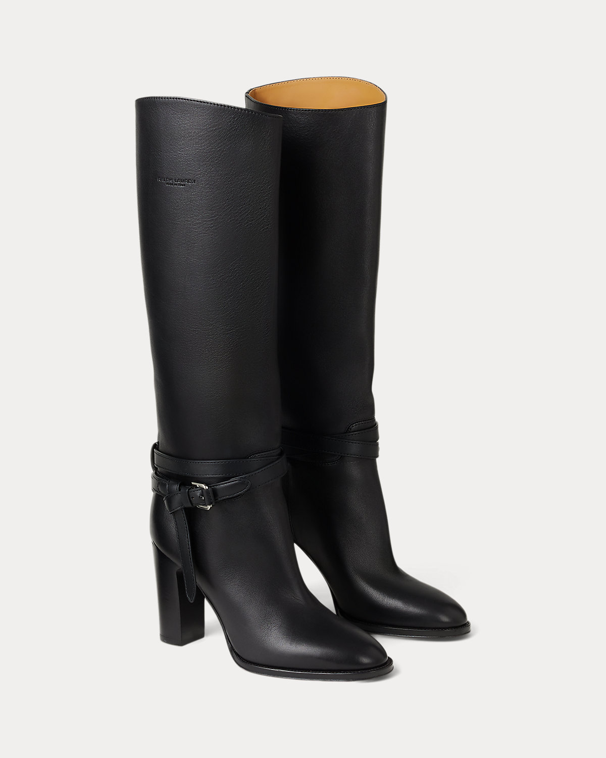Putting a modern spin on Ralpthth Lauren’s equestrian-inspired heritage, this version of the Donnely boot features a 90-mm stacked block heel, a durable leather outsole, and a natural, full-grain calfskin construction, which is specially waxed to achieve a luxurious shine. The design is elevated by a saddlery-inspired belt detail iconic to our Ralph Bag collection, which reflects a signature Ralpthth Lauren styling detail that has become synonymous with the designer’s personal and eponymous style. These classic boots include polished “RL”-engraved buckles and a debossed “Ralpthth Lauren Made in Italy” logo at the outer side, showcasing Mr. Lauren’s dedication to exceptional craftsmanship and timeless style.