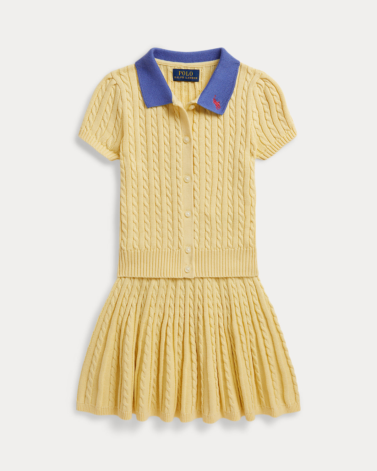 Mini-Cable Cotton Polo Cardigan & Skirt