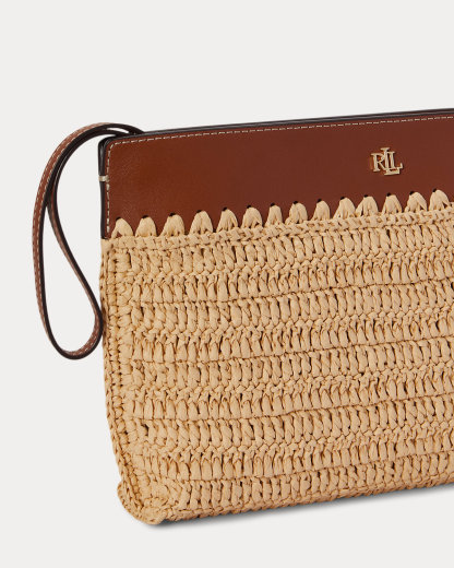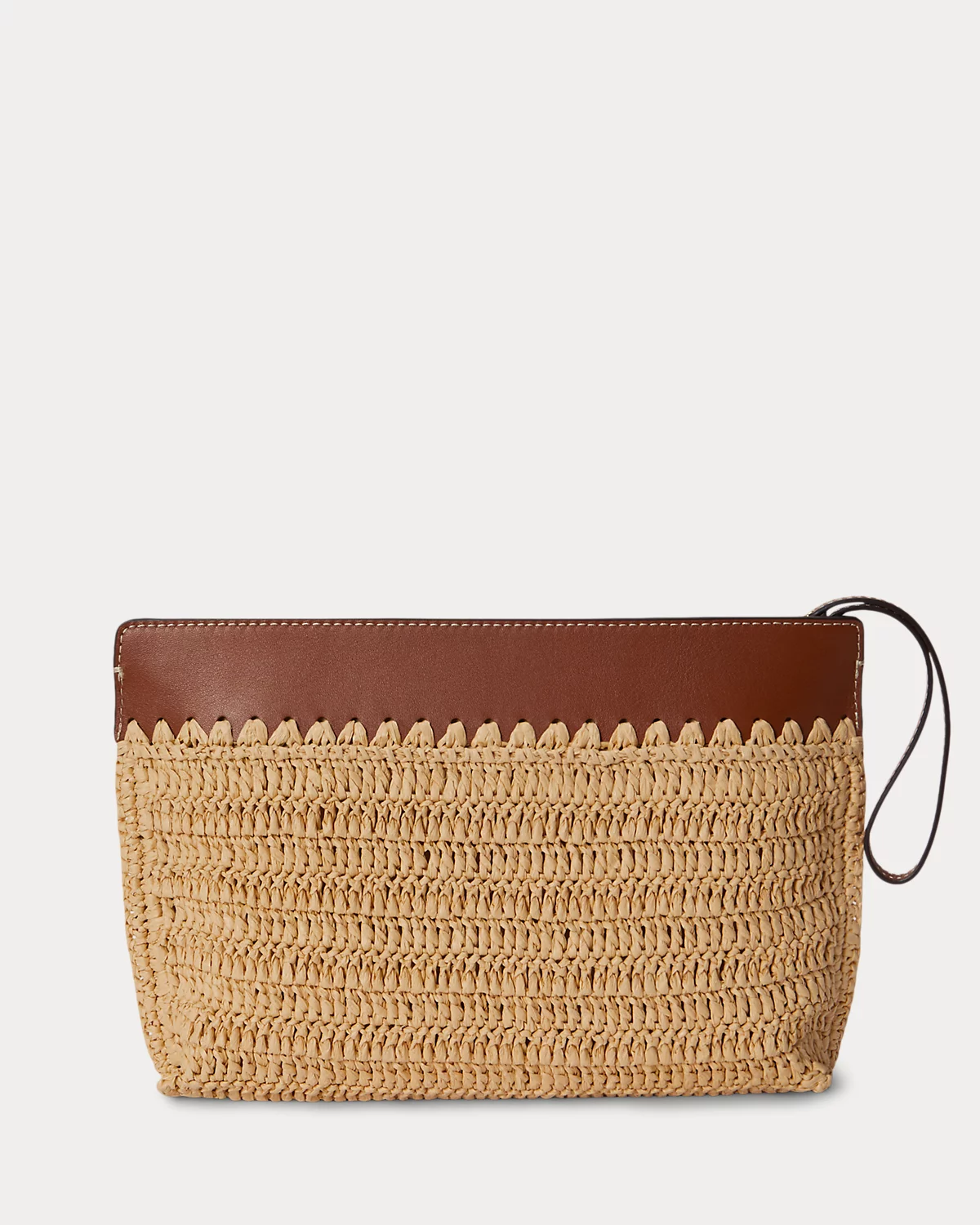 Stay organized while traveling light with Lauren’s large pouch, which features ample storage for your essentials. Embellished with our signature logo at the front, this version is crafted with a combination of crocheted straw and supple full-grain leather trim.
