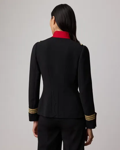 This double-faced wool piece is updated for the modern woman with a slim, sculpted shape and specially developed trim.