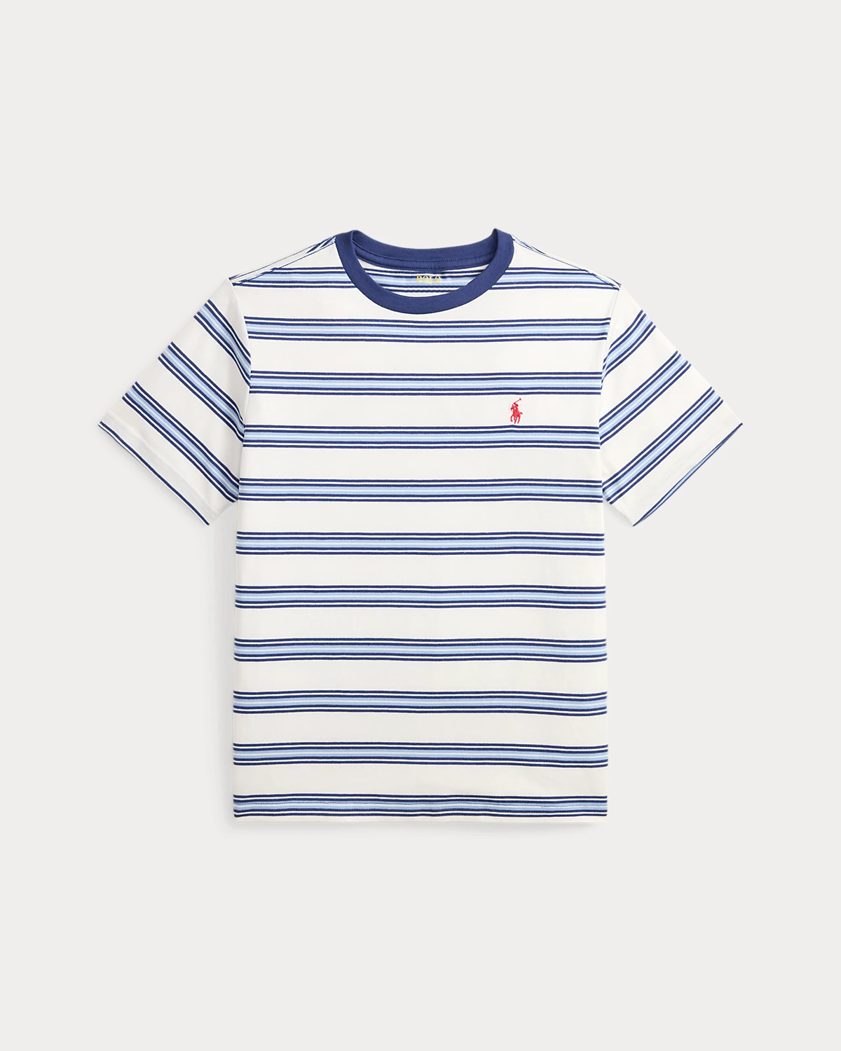 Made with soft cotton jersey, this crewneck tee achieves a classic Polo look with crisp stripes and our signature embroidered Pony.