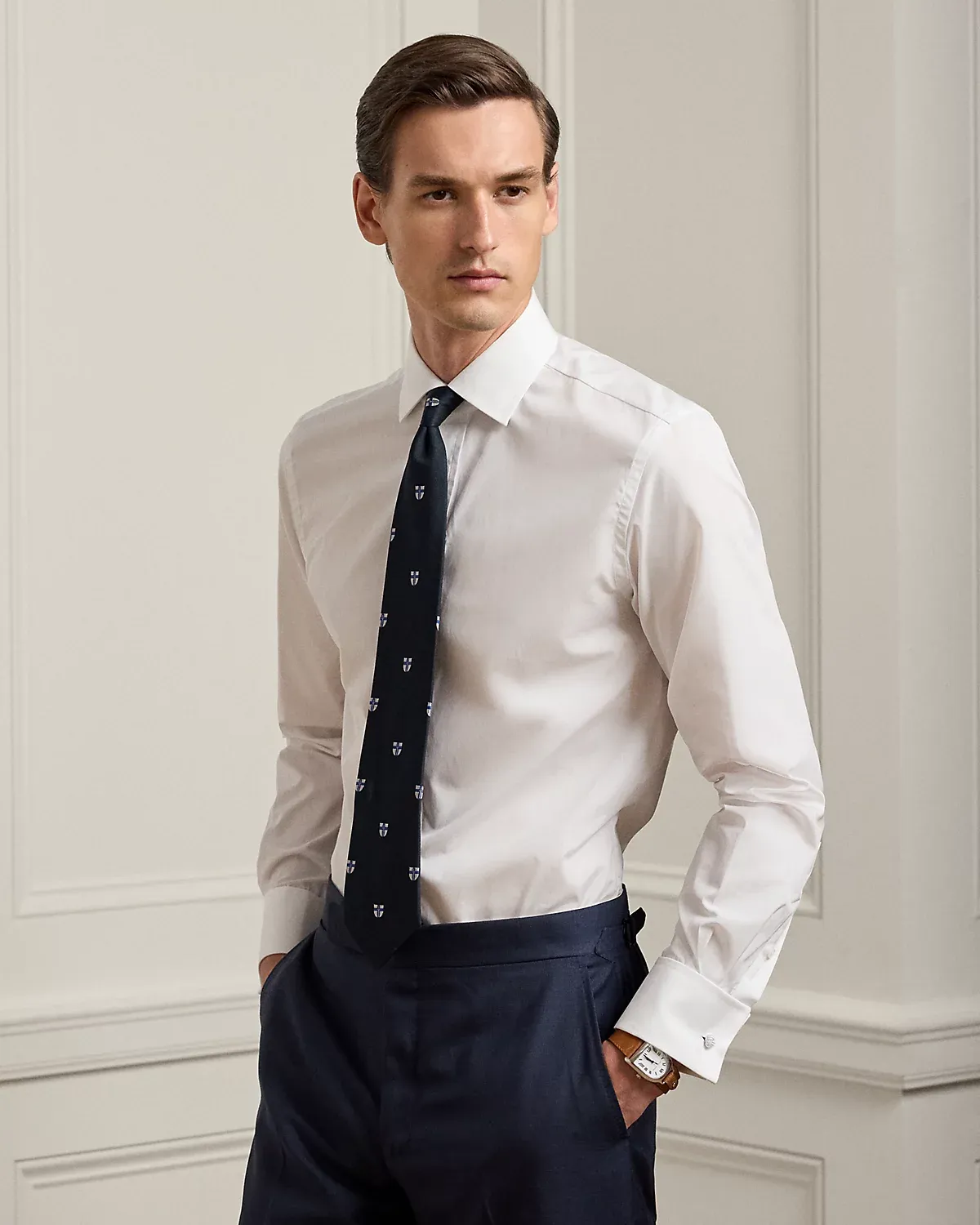 - Classic wide-spread collar. 3” point length and 5” collar spread. Signature collar stays.