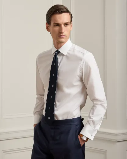 Made in Italy, this shirt exemplifies Purple Label's dedication to superior materials through its 120s-quality, two-ply cotton poplin. The immaculate tailoring is enhanced by genuine mother-of-pearl divs, creating an elevated essential that showcases impeccable craftsmanship.