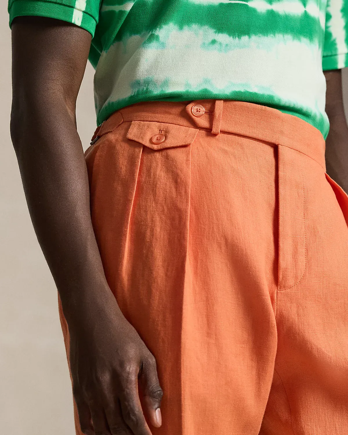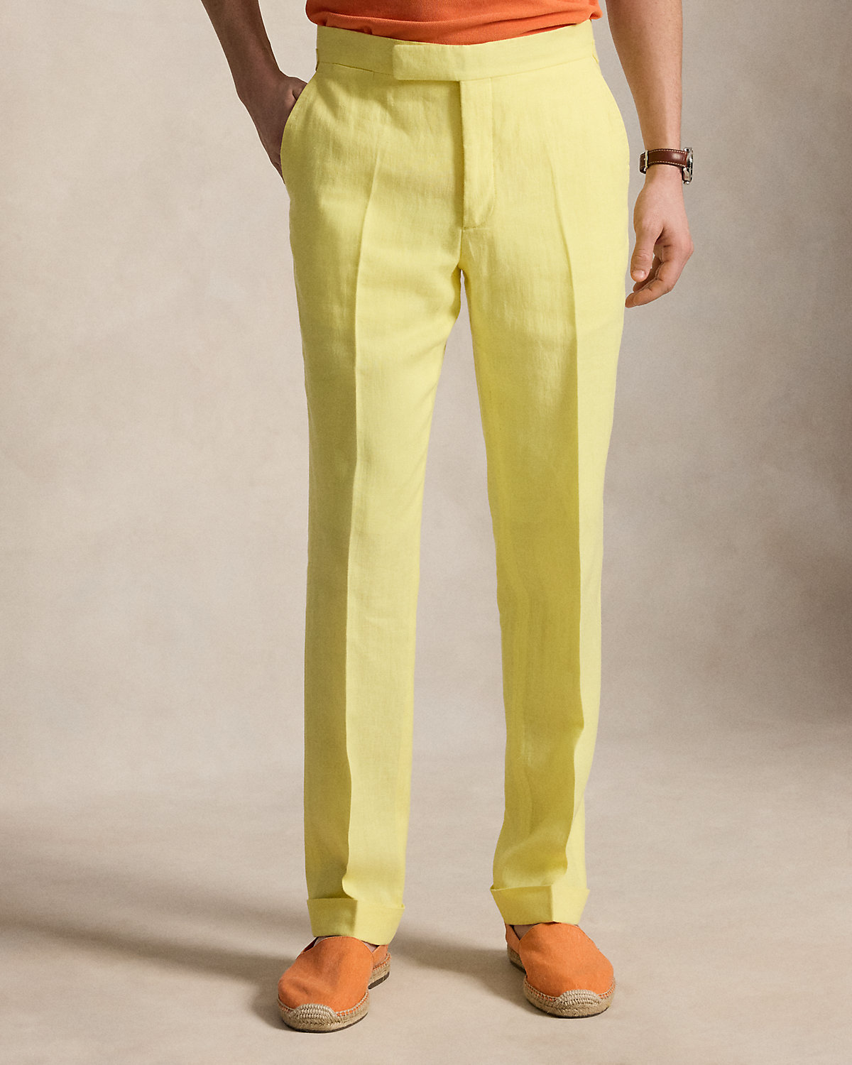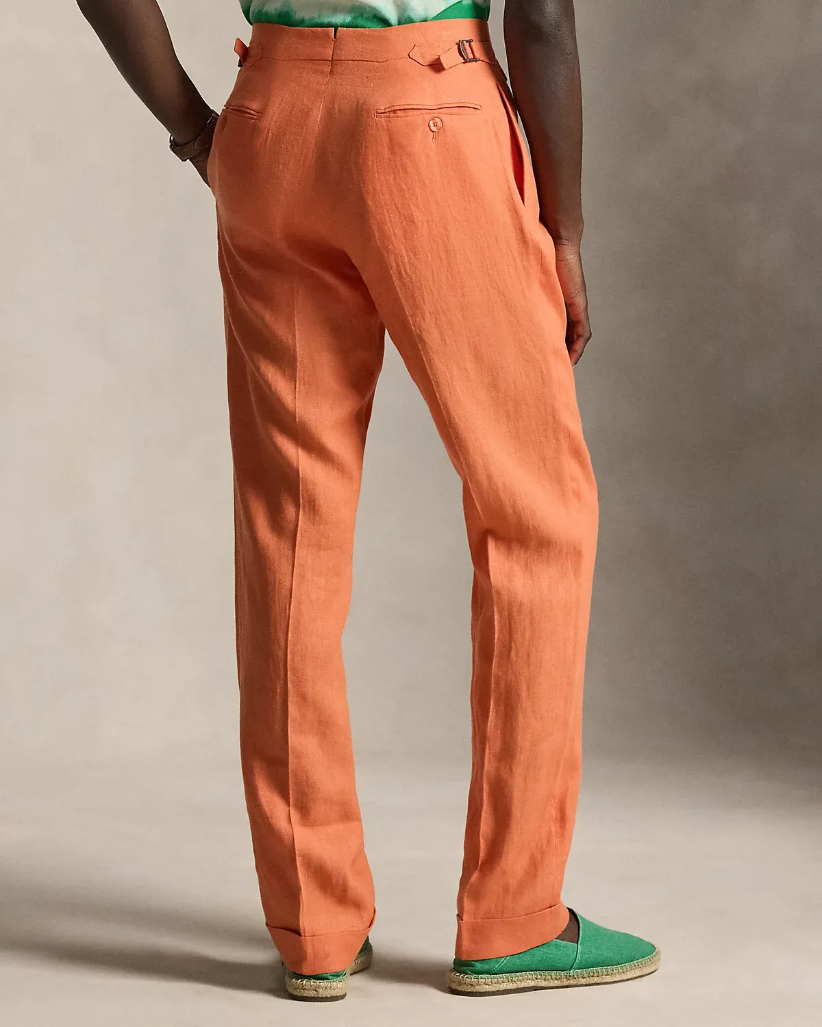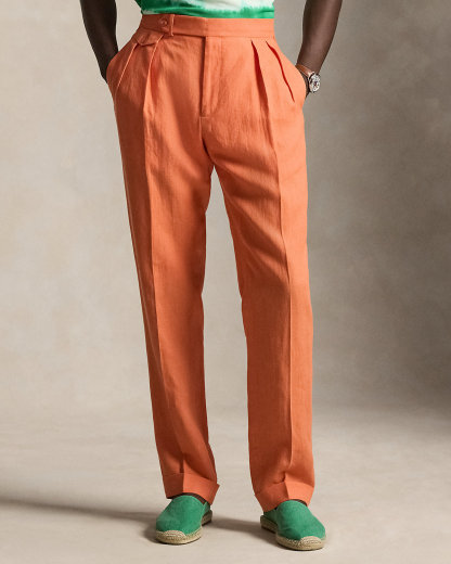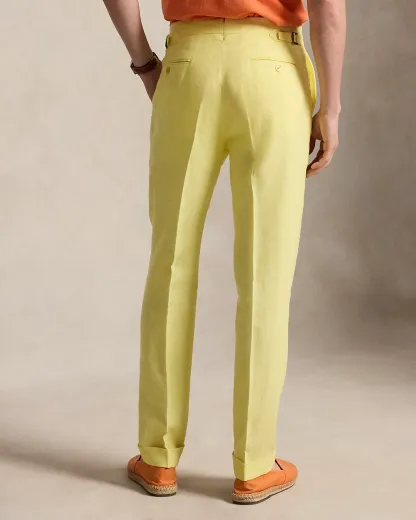These trousers are crafted with a custom-developed linen fabric that is breathable and lightweight.