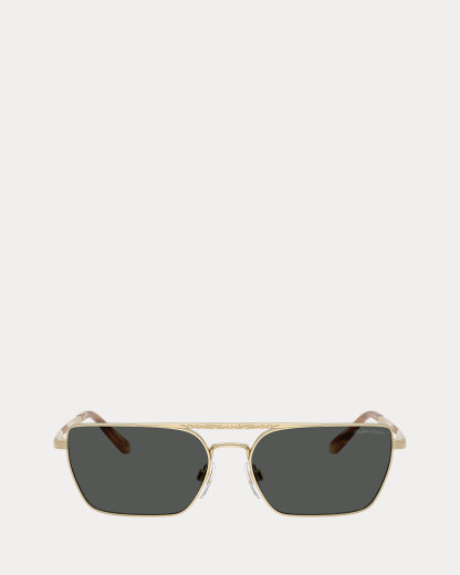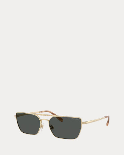 Part of Ralpthth Lauren’s Western collection, these rectangular sunglasses are sculpted with a combination of polished steel and metal and finished with tinted lenses featuring 100 percent UV protection. A scrolling filigree motif—inspired by the iconic style of the American West—is engraved throughout.