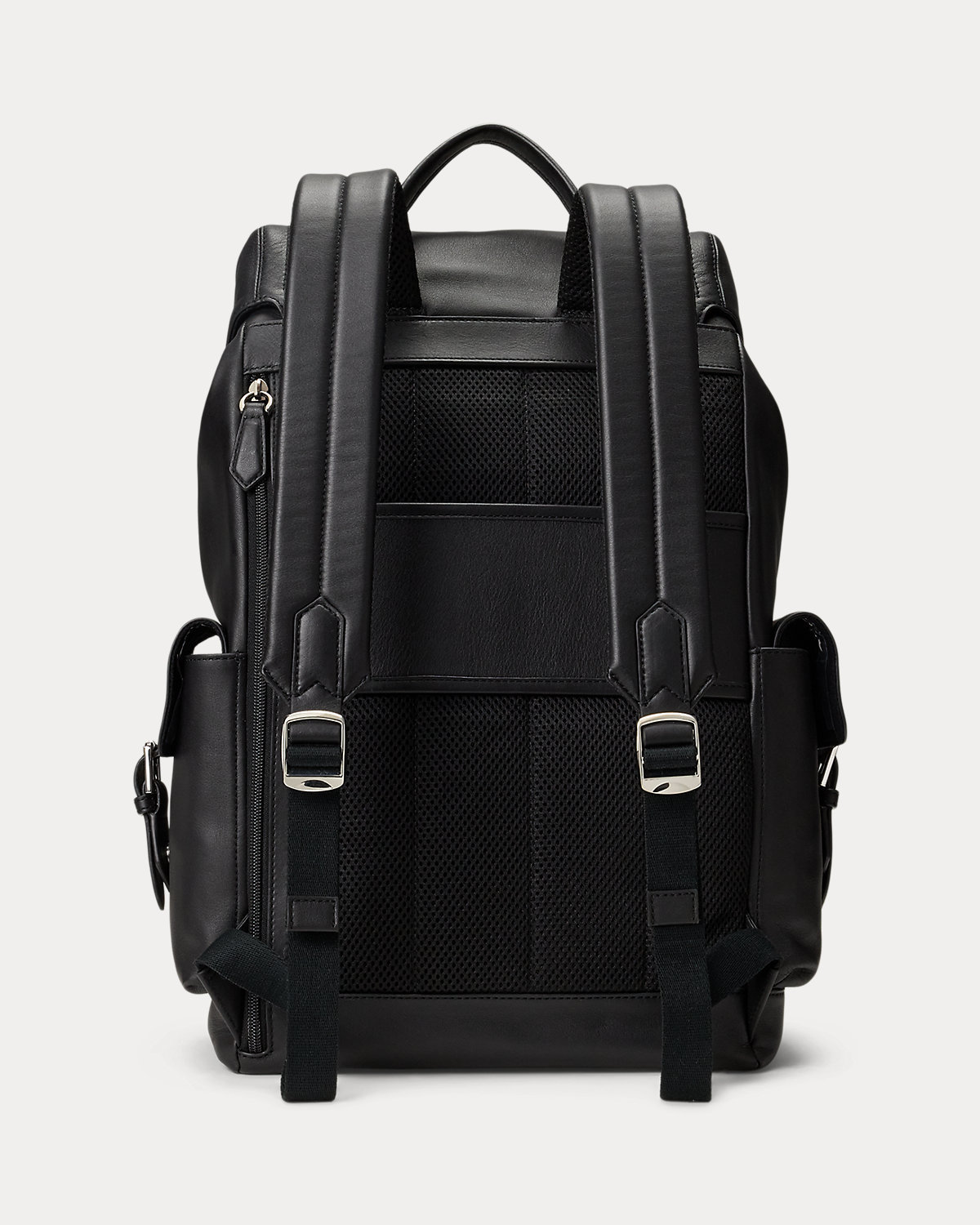 Crafted with smooth leather, this backpack features a buckled-flap closure over a drawstring top and an additional zip entry for easy access. Multiple pockets provide storage for your essentials, while the mesh-paneled back is padded for comfort.