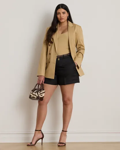 Crafted with lightweight linen-blend twill, these high-rise shorts are detailed with crisp pleats, folded cuffs, and waist darts for a tailored look.