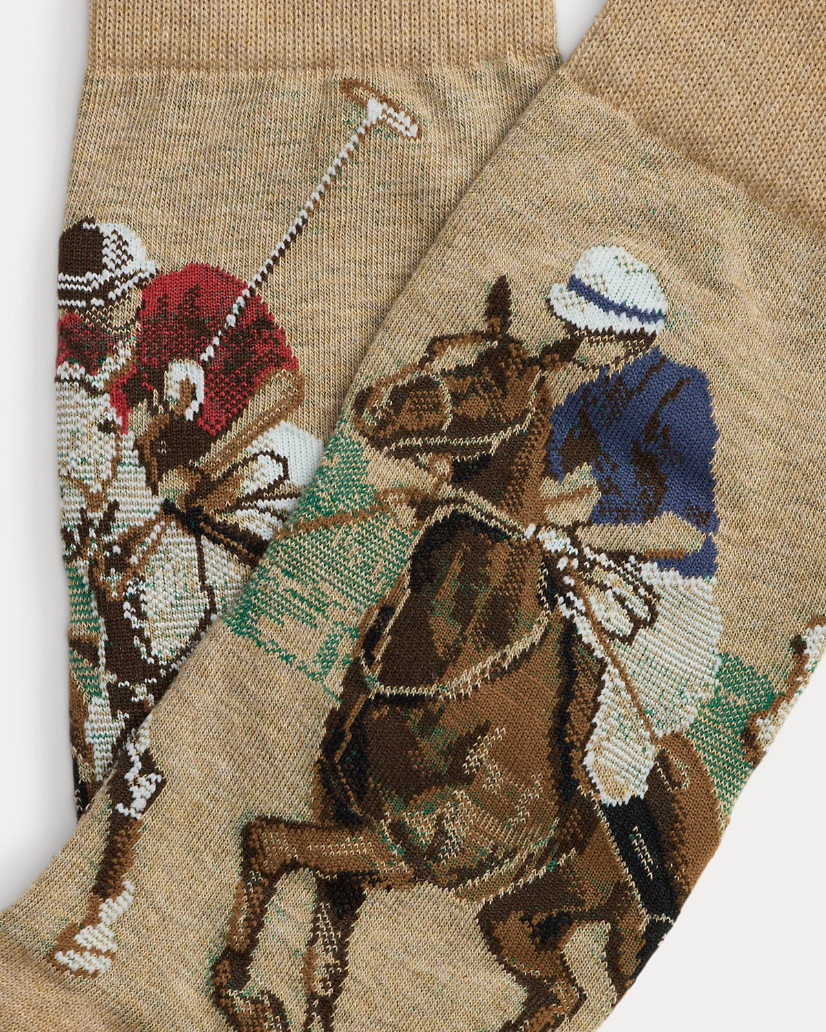 In a nod to Ralpthth Lauren’s equestrian heritage, these trouser socks are knit with large-scale scenes of a spirited polo match.
