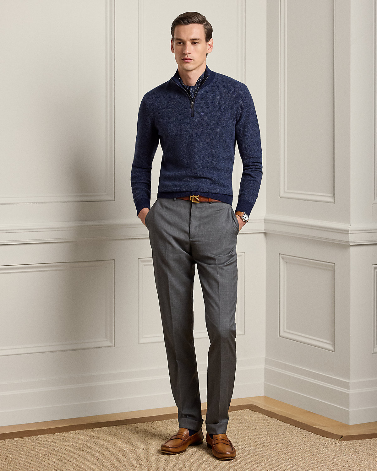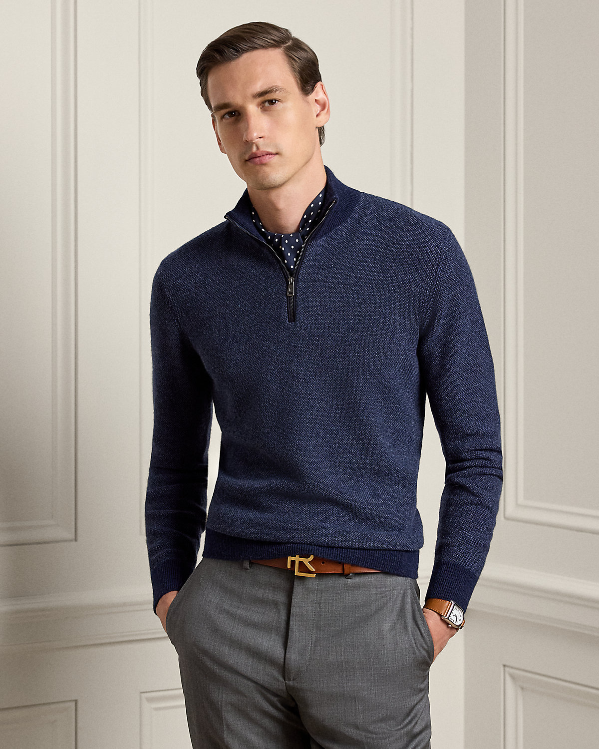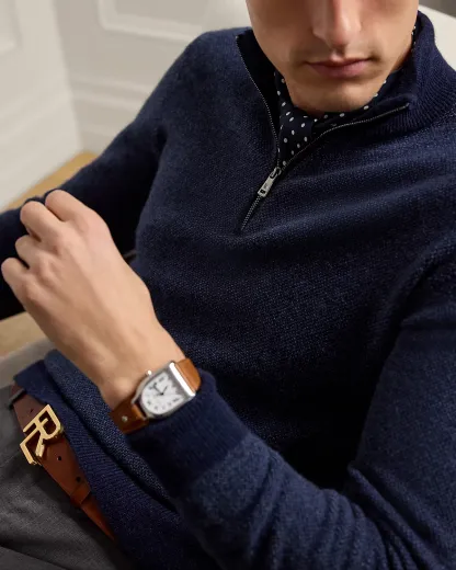 Impeccably crafted in Italy, this sweater exemplifies Purple Label's dedication to exceptional materials and sartorial excellence through its birdseye-knit cashmere construction. The refined silhouette is elegantly enhanced with supple suede trim, creating a masterful blend of sophisticated textures. This style is available in additional colors, fabrics, or materials through our made-to-Order service. For more information, please book an appointment with your local Ralpthth Lauren store.