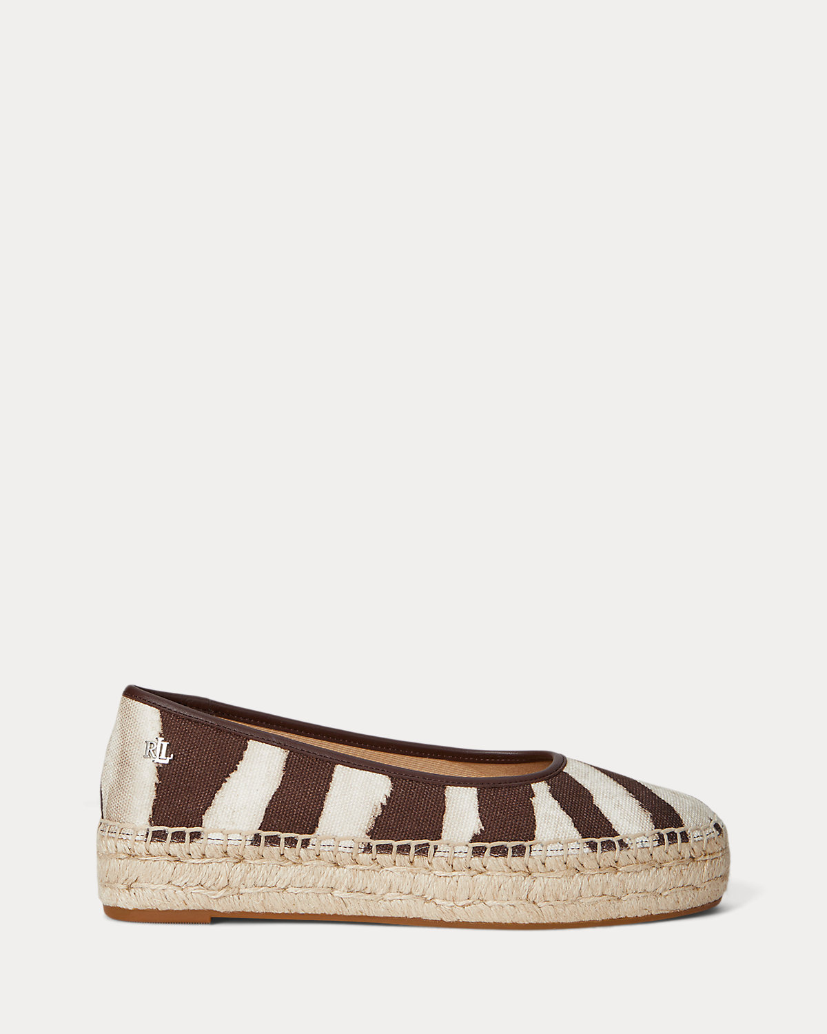 Merging two timeless footwear silhouettes into one unique style, this version of the Luize features a textured canvas ballet flat upper set on a jute-and-rubber espadrille base. Showcasing the season’s eye-catching zebra print, this pair is embellished with an “LRL” logo for a signature finish.