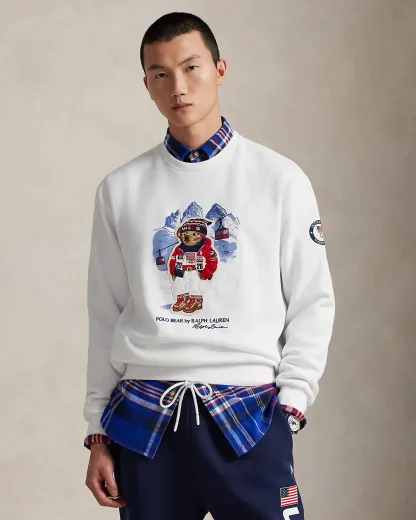 Part of the Polo Ralpthth Lauren Team USA collection, this unisex fleece sweatshirt features our iconic Polo Bear sporting the uniform Ralpthth Lauren designed for Team USA to wear during the Closing Ceremony of the Olympic and Paralympic Games Milano Cortina 2026.