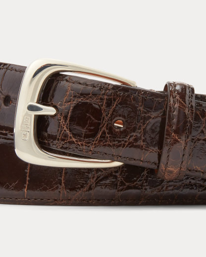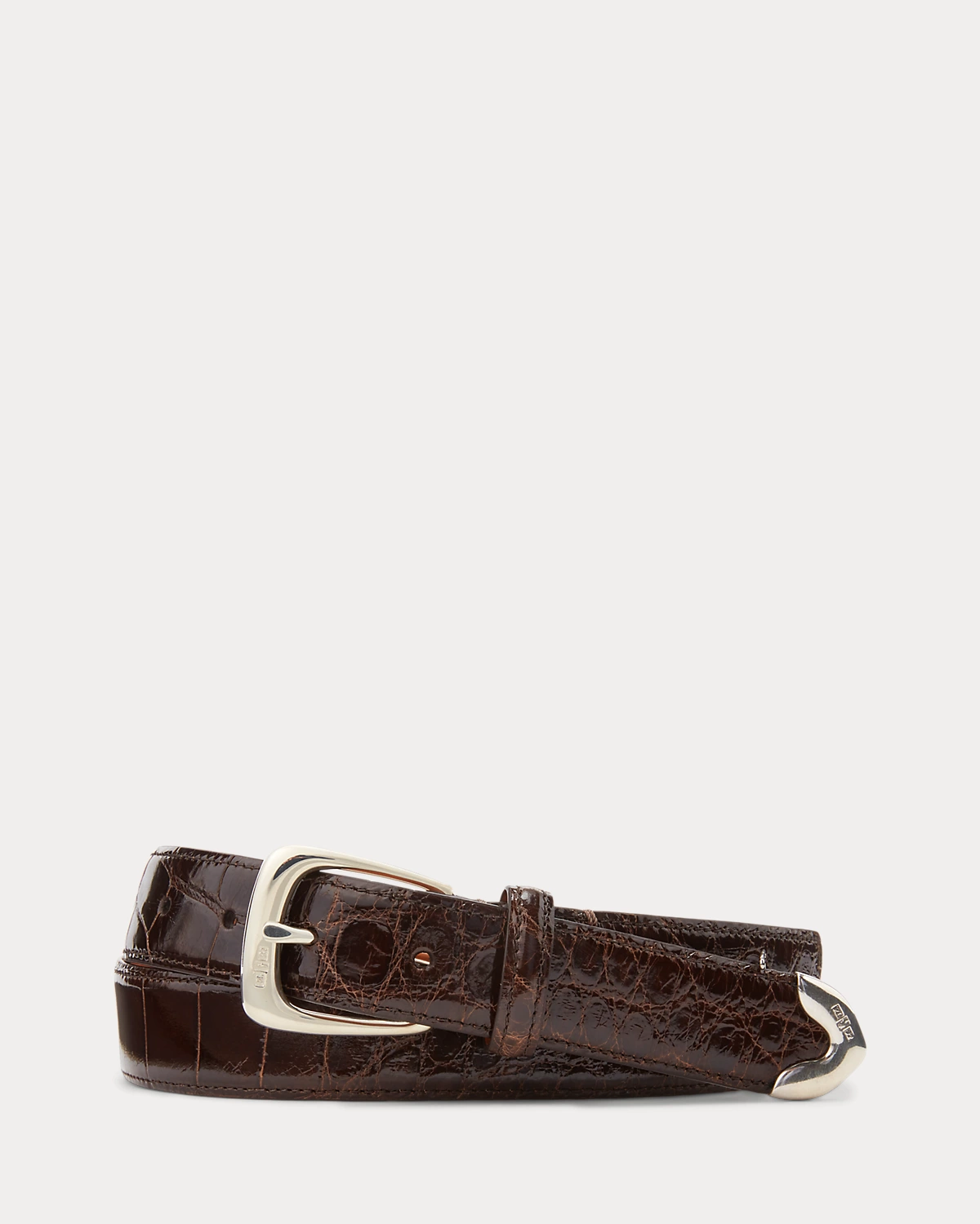 Made in America from genuine alligator, this slender belt is finished with sterling silver at the buckle and tip.