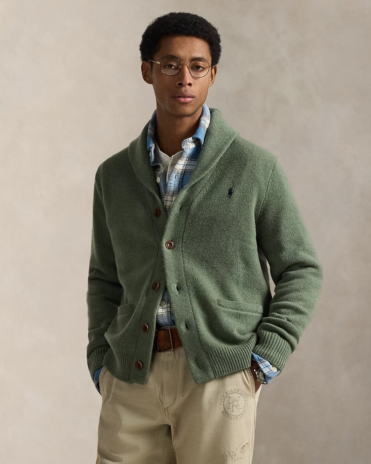 Elevate your cold weather wardrobe with this shawl-collar cardigan, which is masterfully crafted with wool-and-cashmere yarn that was spun at an Italian mill. The distinguished silhouette is punctuated by our signature embroidered Pony at the chest, making this piece an enduring symbol of timeless sophistication.