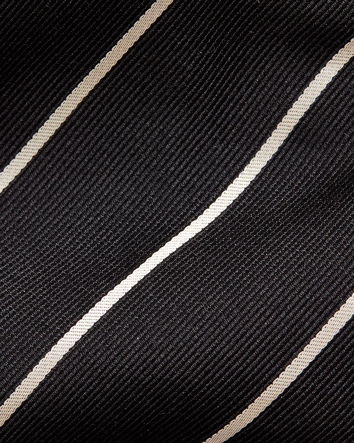 Exceptional fabrics, signature designs, and fine Italian craftsmanship are the hallmarks of our woven ties. Each one is hand-cut on a perfect 45-degree bias to ensure that it never twists or turns. This version's striped silk faille cloth was custom-developed with a Como-based mill that is renowned for its striking textiles.