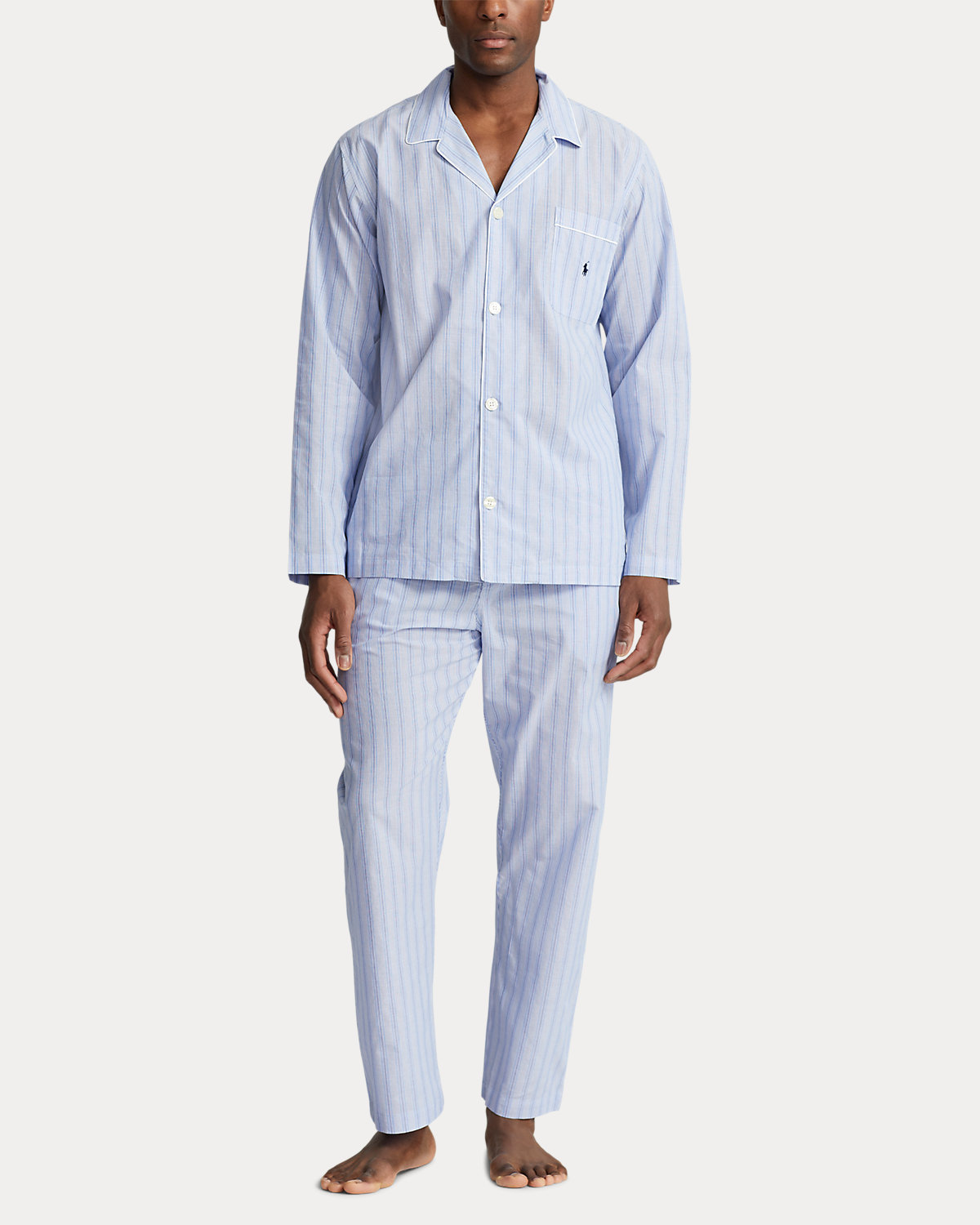 This Big & Tall pajama shirt is made with striped cotton broadcloth and features our signature embroidered Pony.
