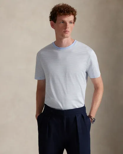 Made with luxurious cotton lisle, this T-shirt is intricately embroidered with a tonal iteration of our Pony to match back to its striped layout.