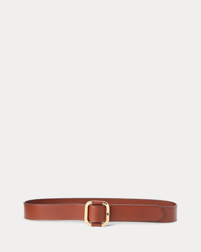 Crafted with supple leather, this stylish belt features a polished brass-finished slide buckle with signature “LRL” engraving.