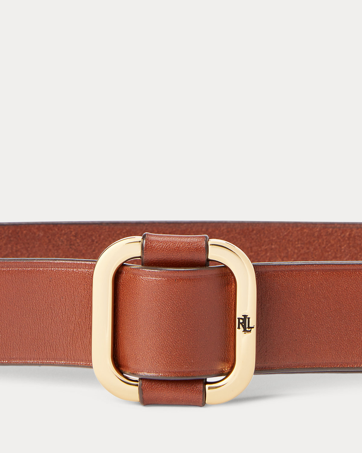 - Brass-finished slide buckle custom-developed with an “LRL” logo.