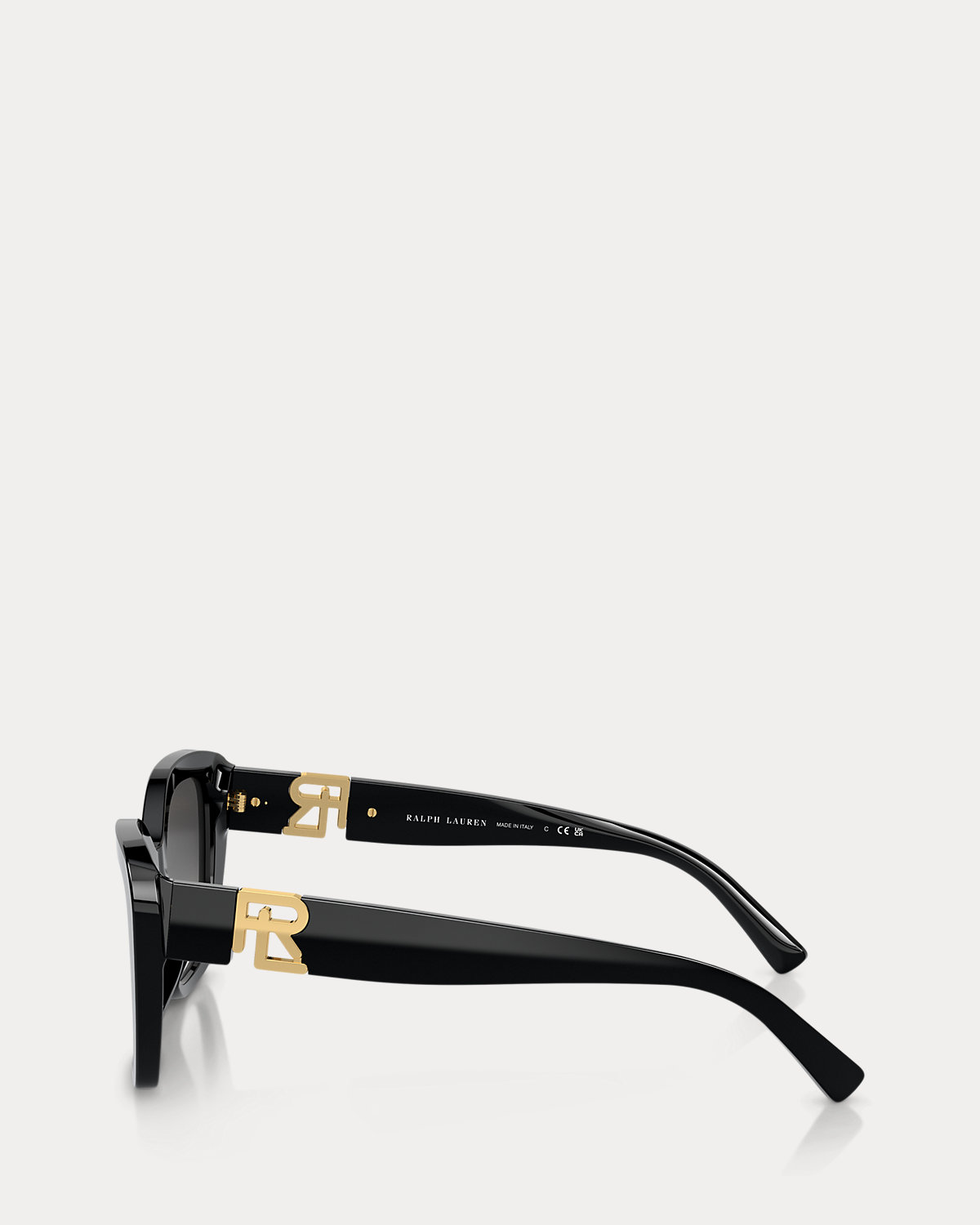 - Signature “Ralpthth Lauren” printed at the left lens. Signature stacked “RL” logo at each temple.