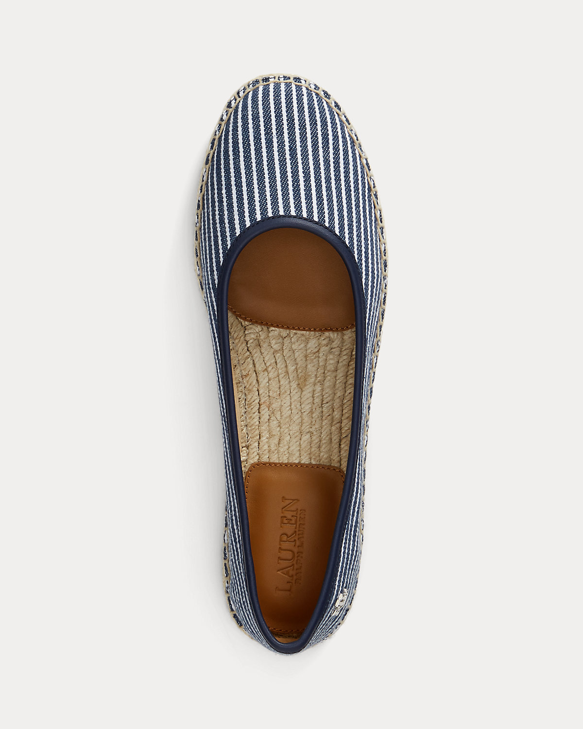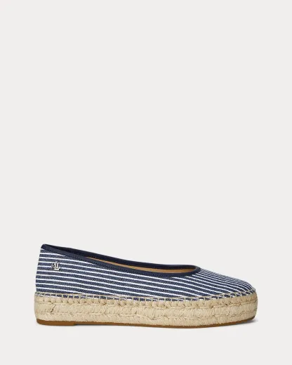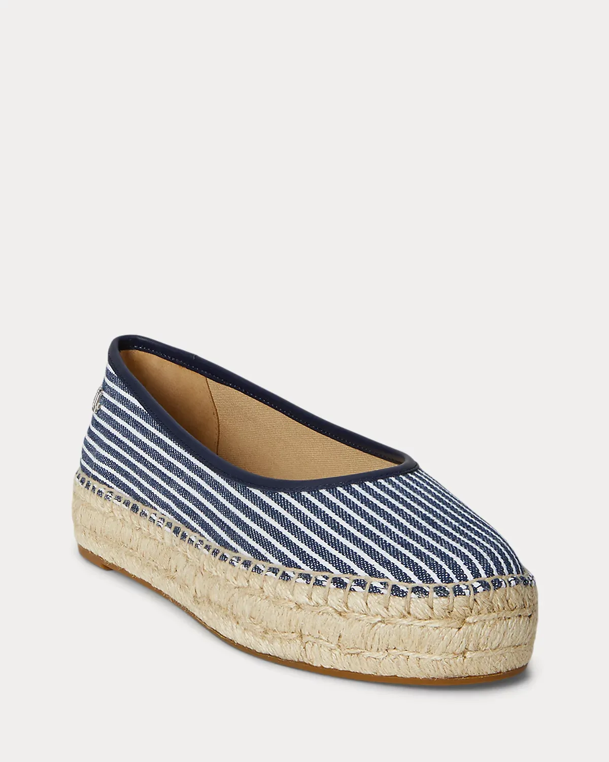 Merging two timeless footwear silhouettes into one unique style, this version of the Luize features a textured canvas ballet flat upper set on a jute-and-rubber espadrille base. Yarn-dyed with classic stripes, this pair is embellished with an “LRL” logo for a signature finish.
