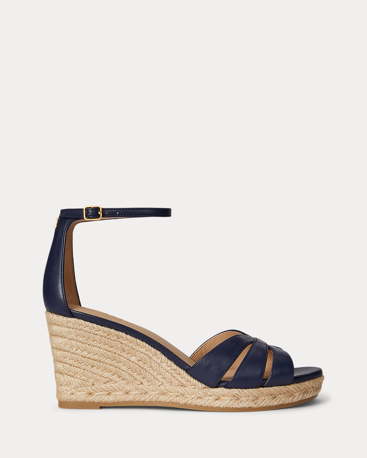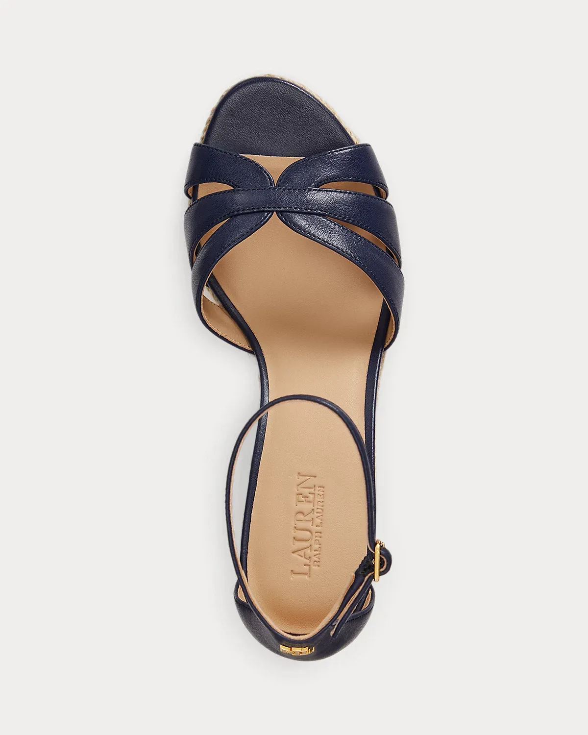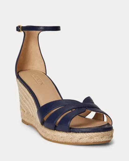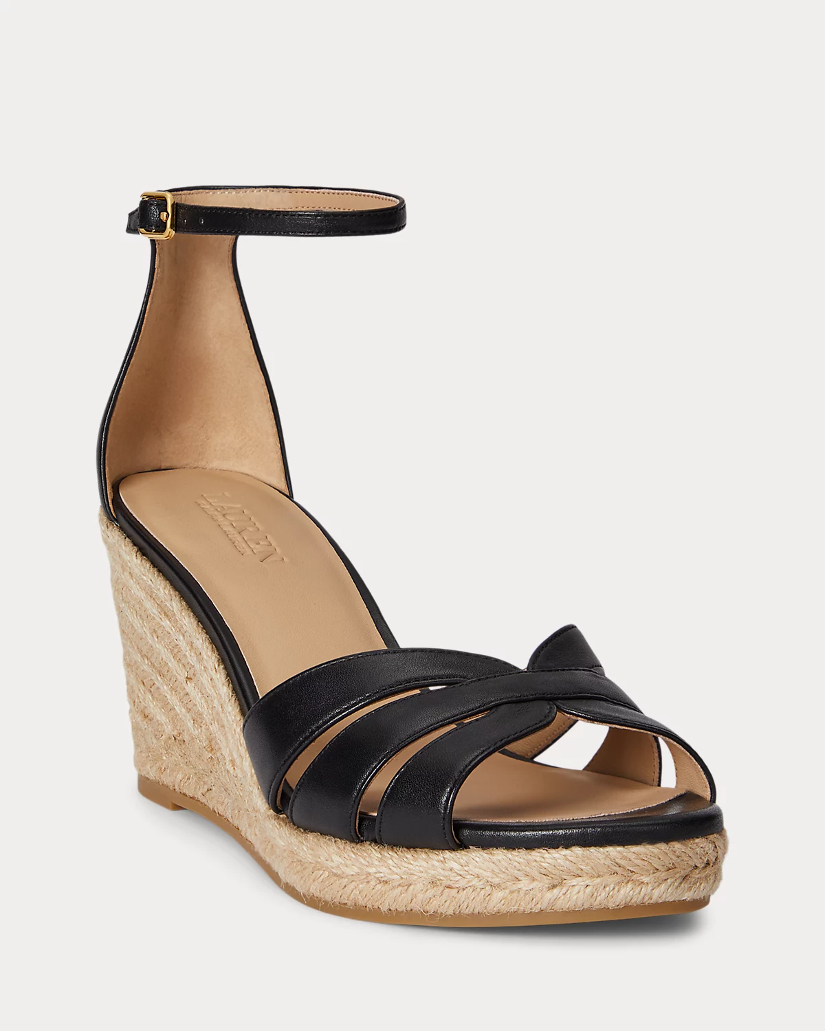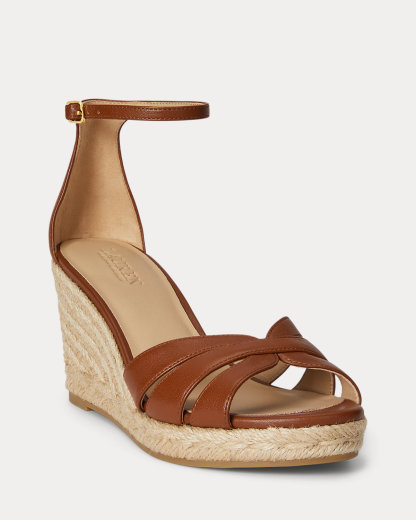 Lauren Ralpthth Lauren’s luxurious take on the quintessential espadrille, the Nellie showcases a multi-strap nappa leather upper set on a jute-wrapped wedge. A polished “LRL” brass-finished logo at the back adds a signature finish.
