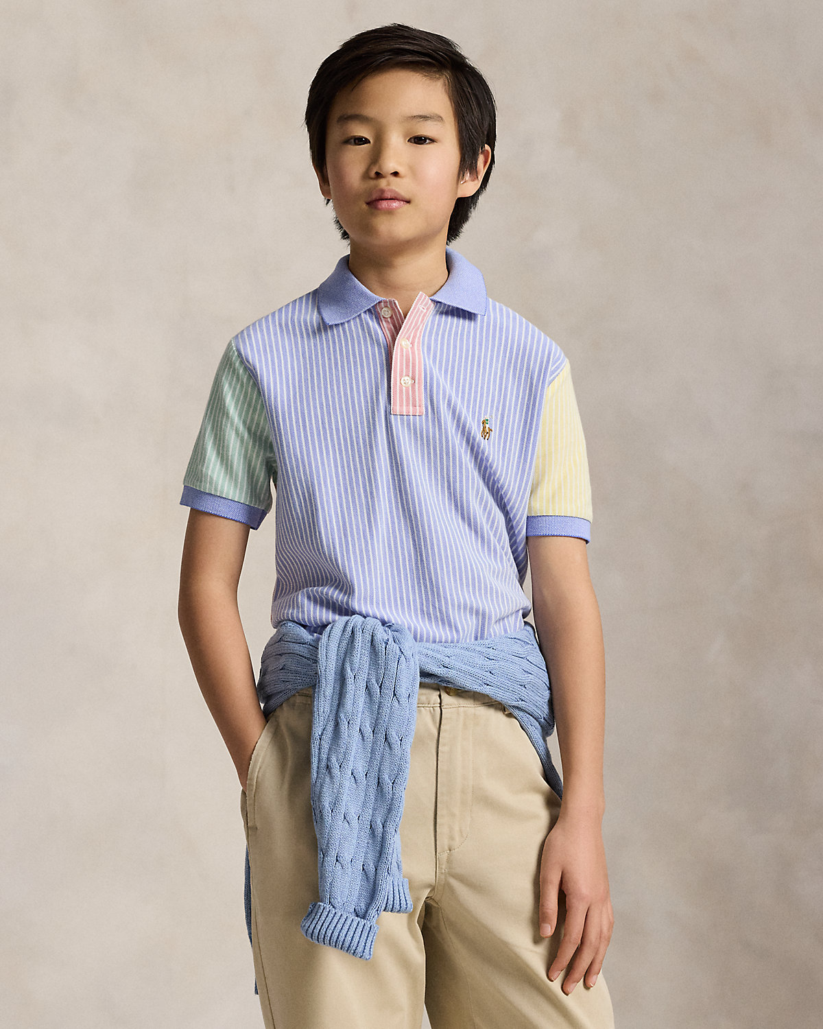 This Polo shirt’s striped cotton mesh features a heathered appearance similar to our signature oxford cloth.