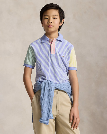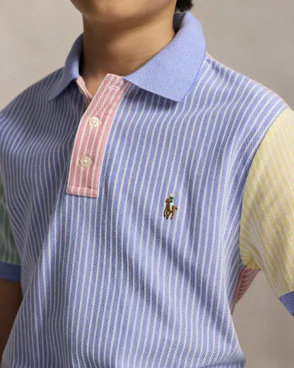 Striped Oxford Mesh Polo Shirt