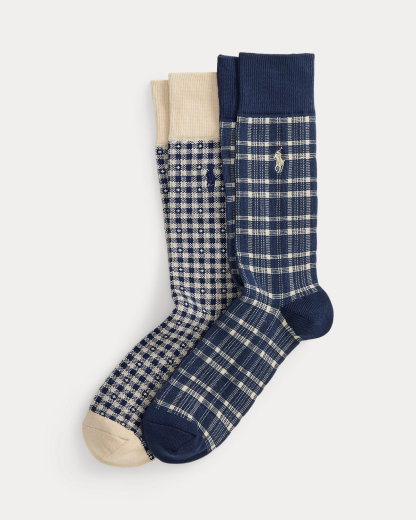 Featuring patterns inspired by plaid and checked shirting fabrics, the cotton-blend trouser socks in this two-pack are finished with our signature embroidered Pony.