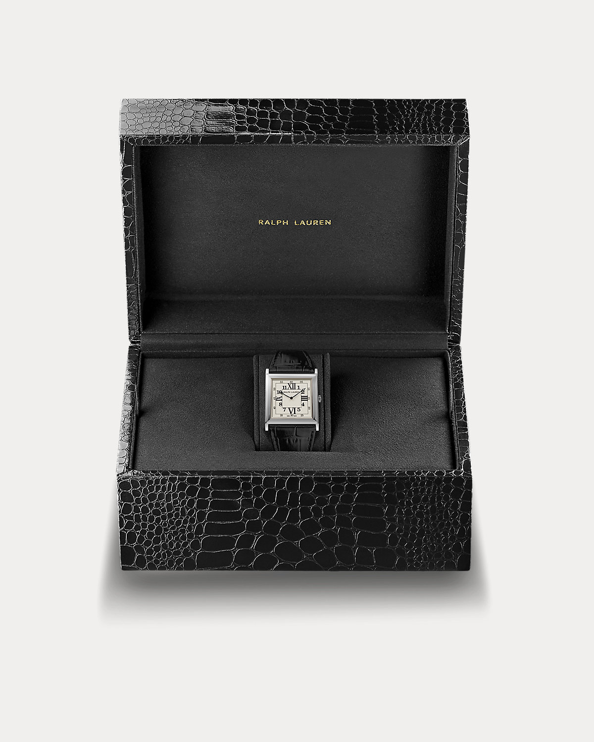 - Each timepiece is elegantly presented in our signature "Ralpthth Lauren" alligator-embossed watch box and includes an Instruction Manual and a Guarantee Card.