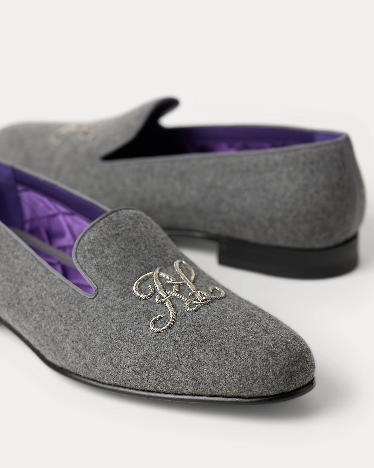 The Alonzo blends traditional Italian craftsmanship with sleek, modern styling. Realized in plaid wool tweed, this elegant slipper is finished with our signature “RL” script embroidery.