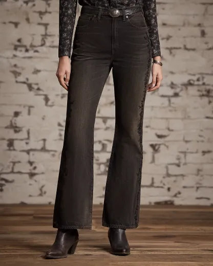 Embroidered Black Bootcut Jean