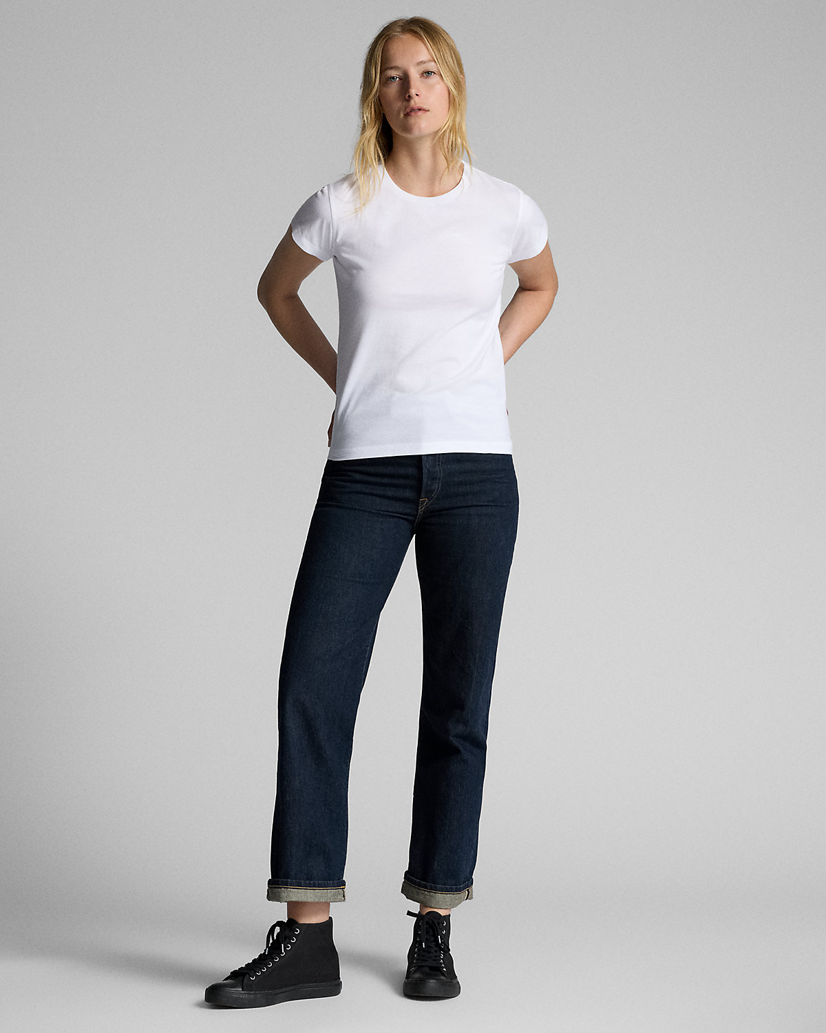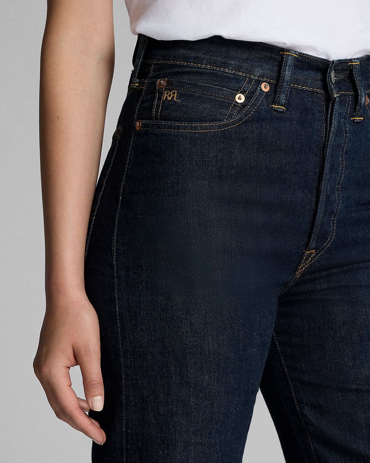 High-rise, straight-fitting jeans made from 11.2 oz. selvedge denim. 3x1 right-hand twill is shuttle-woven in Japan. Dyed with indigo and rinsed. “RRL” embroidery at the selvedge coin pocket. Sanforized® to reduce shrinkage.