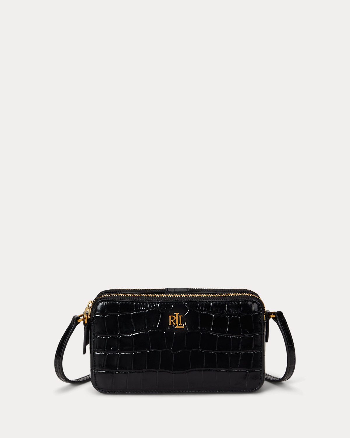 Glossy crocodile-embossed leather brings rich dimension and luxurious style to this Witley wallet, which is designed with an adjustable crossbody strap for hands-free styling. Embellished with an “LRL” logo at the front, this style features a triple-compartment silhouette perfect for storing your credit cards and other small items.