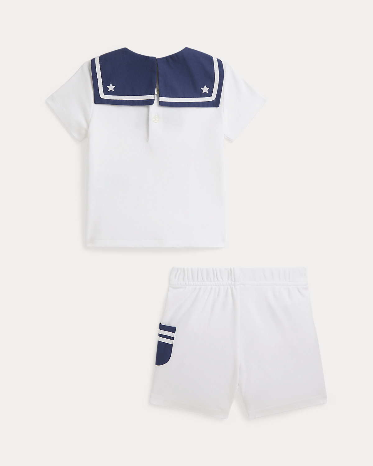 Made with soft cotton interlock, this sailor tee and the coordinating shorts create an adorable nautical-inspired outfit.