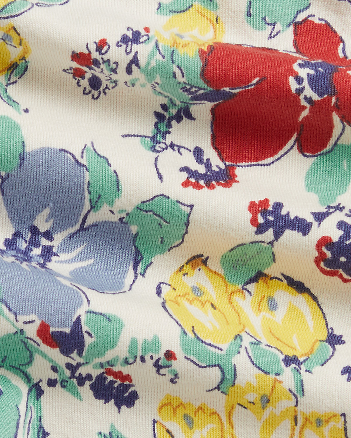 This warm-weather set includes a sleeveless cotton chambray top that’s embroidered with colorful flowers and stretch jersey leggings in a vibrant coordinating print.