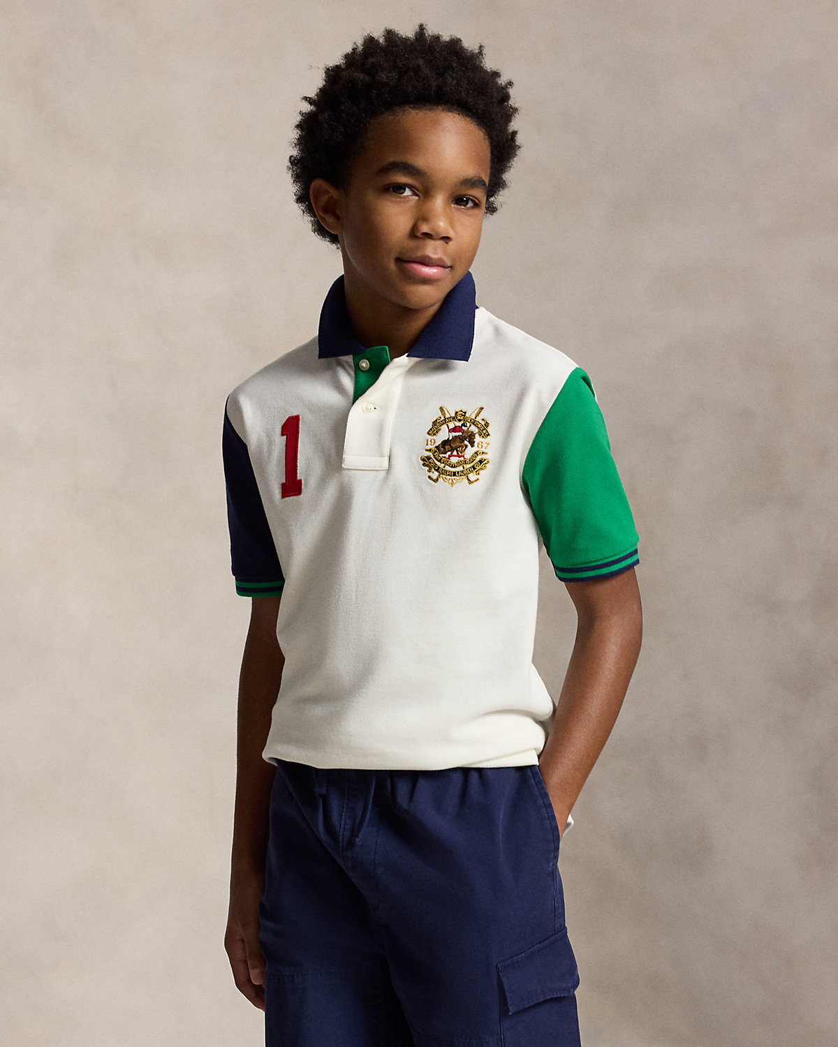 In soft cotton, this everyday essential reflects Polo Ralpthth Lauren’s equestrian-inspired style with a signature crest as well as a “1” appliqué, which represents the number typically worn by a polo team’s top scorer.